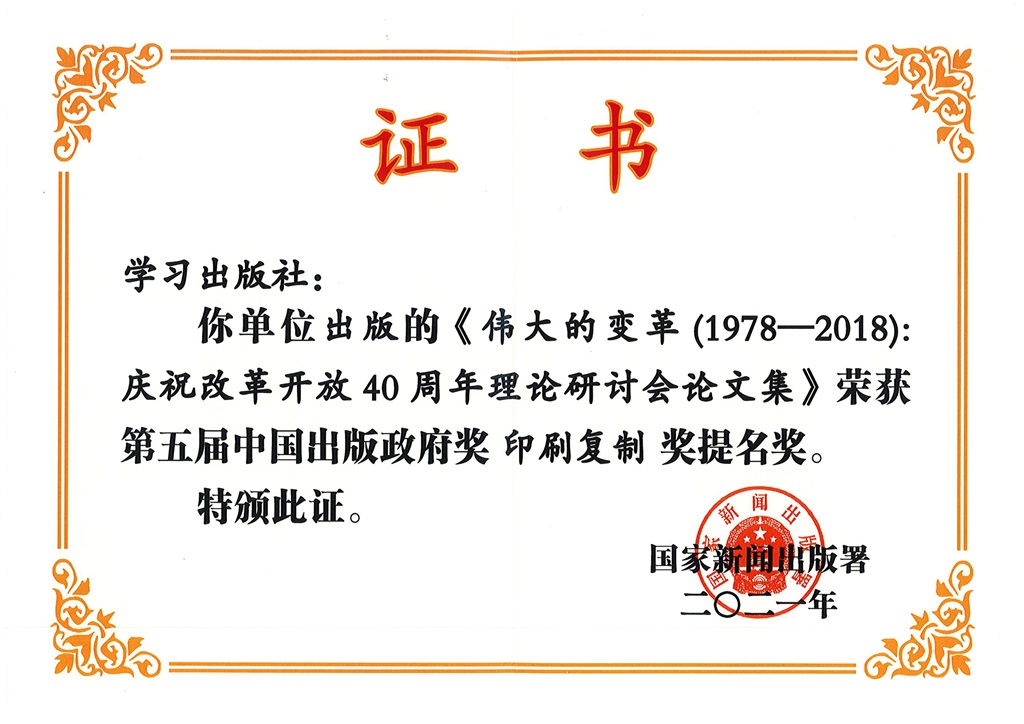 第五屆中國出版政府獎印刷復制獎提名獎