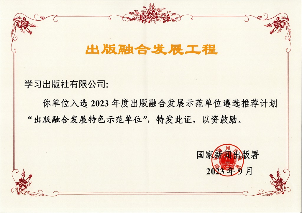我社入選2023年度出版融合發展示范單位遴選推薦計劃“出版融合發展特色示范單位”