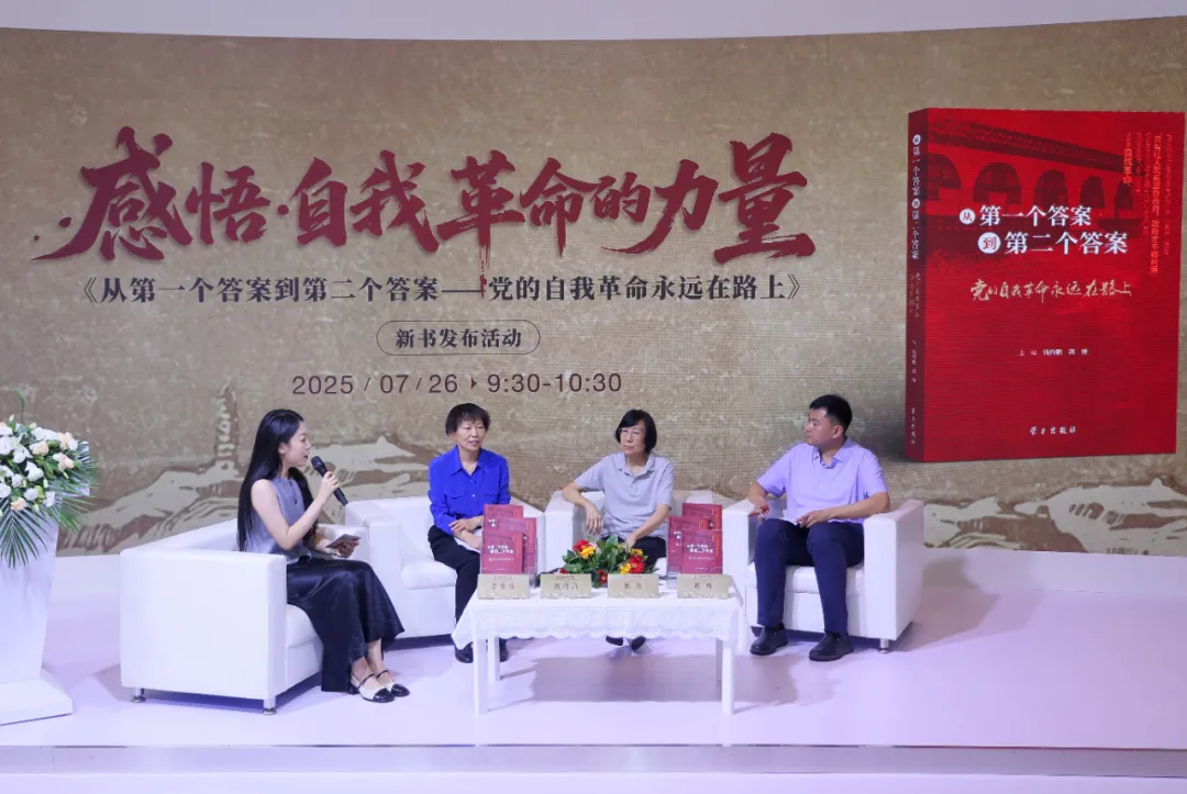 7月26日,學習出版社副總編輯劉向軍,中國延安精神研究會副會長、清華大學資深研究員耿焱女士,以及圖書主編錢均鵬教授、荊博副研究員,出席本書研討交流活動,結合圖書創作出版,圍繞“發揚徹底的自我革命精神,永遠吹沖鋒號,把嚴的基調、嚴的措施、嚴的氛圍長期堅持下去,把黨的偉大自我革命進行到底”,感悟自我革命的力量,進行了深入交流。